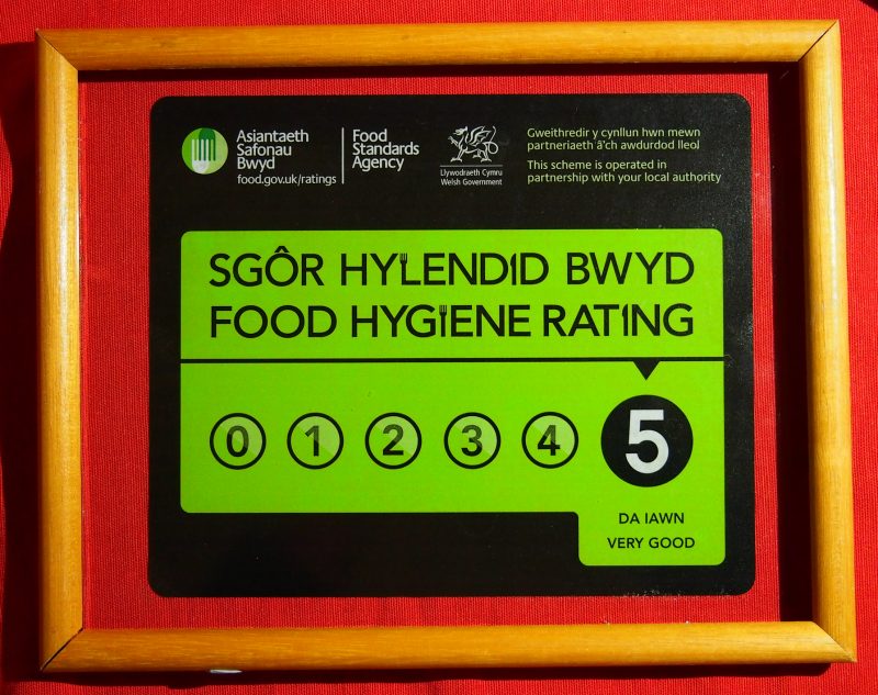 February 2019 we were awarded our third consecutive 5 star food hygeine rating by the local authority’s Food Safety section on behalf of the City & County of Swansea, The Welsh Government and the Food Standards Agency. 5 is the highest rating possible.