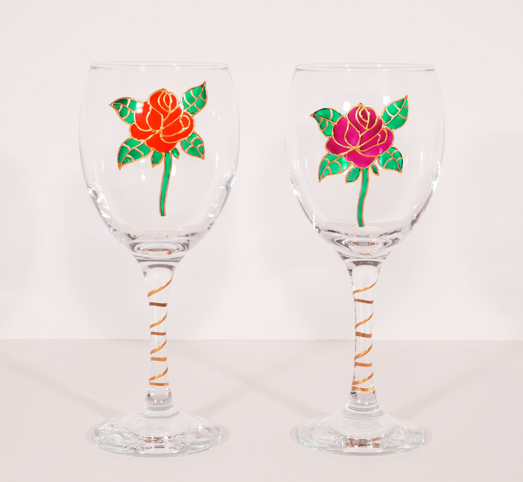 Rose Glass, Rose Wine, Red WIne Glass, Welsh WIne, Welsh GlassRoses are available in Red, Yellow or White.