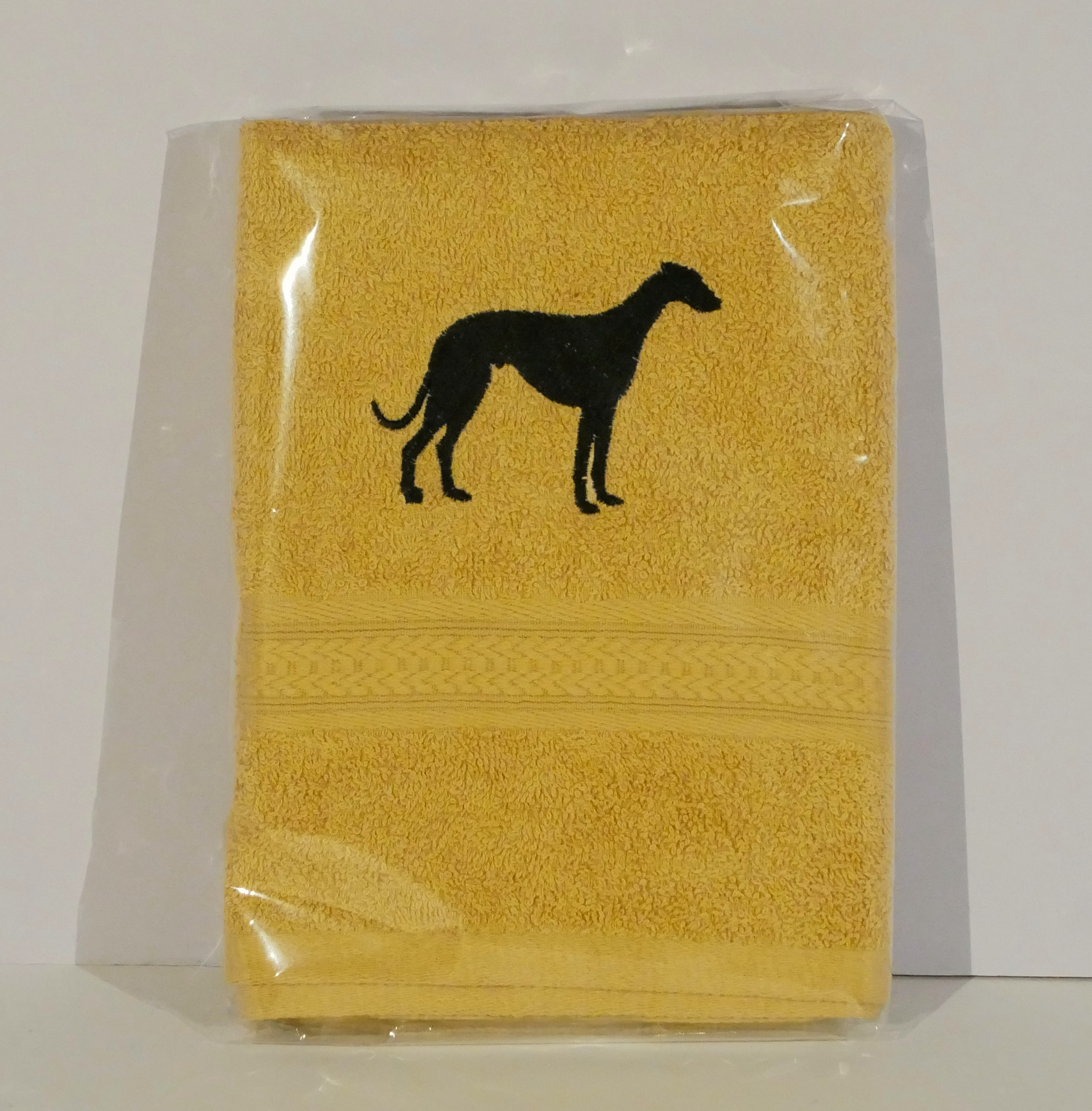 greyhound,greyhound art,greyhound gift,greyhound presents,item with greyhounds on,emroidered greyhound,greyhound embroidery,dog towel,towel with dog on,