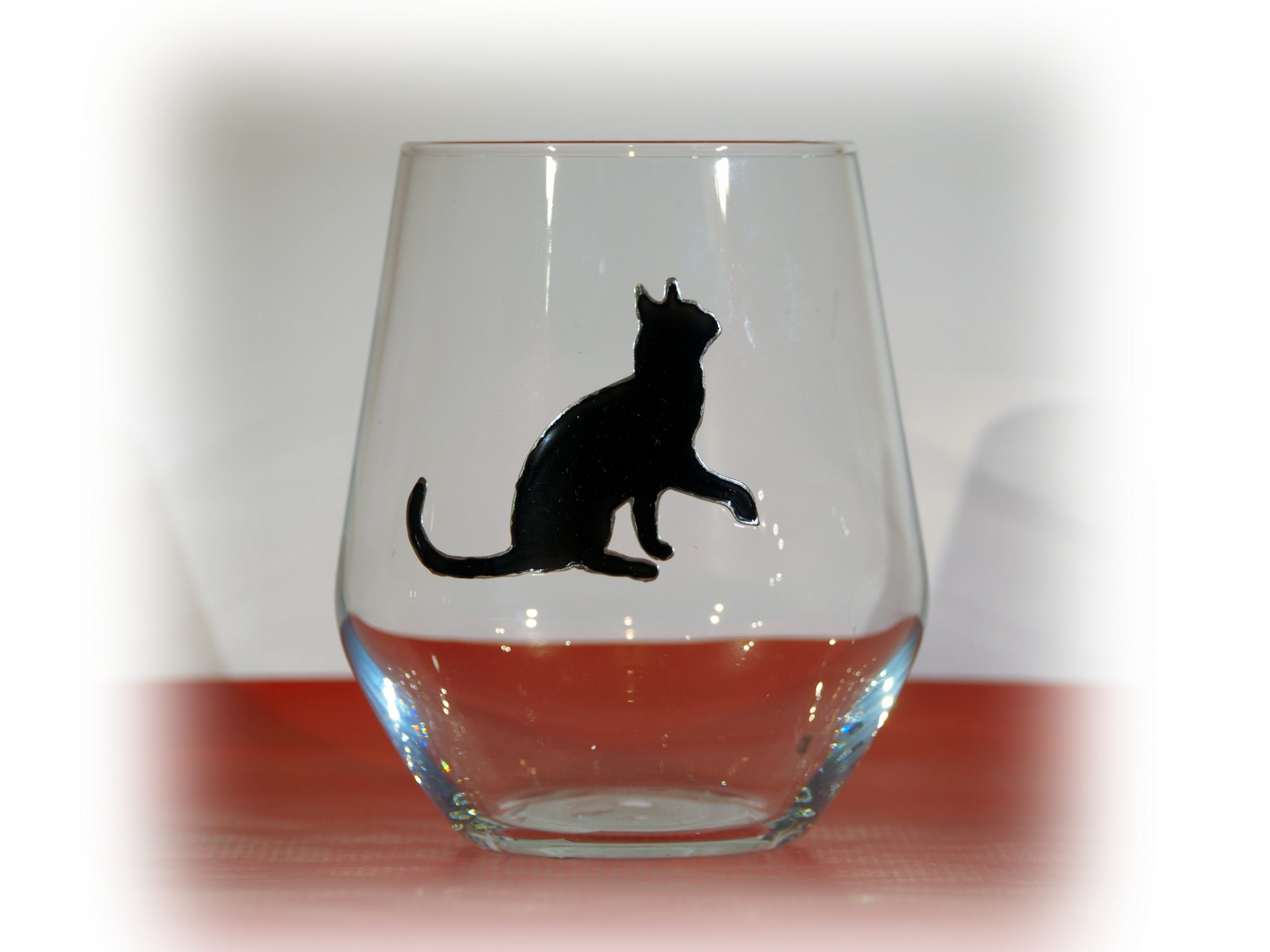 Beautiful hand-drawn and hand-painted Black Cat design on a rounded gin glass ( 45 cls). 11 cms high. Also suitable as a rum, whiskey or spirits glass. We can export to US/Canada/Europe – please contact us for an accurate postage price.