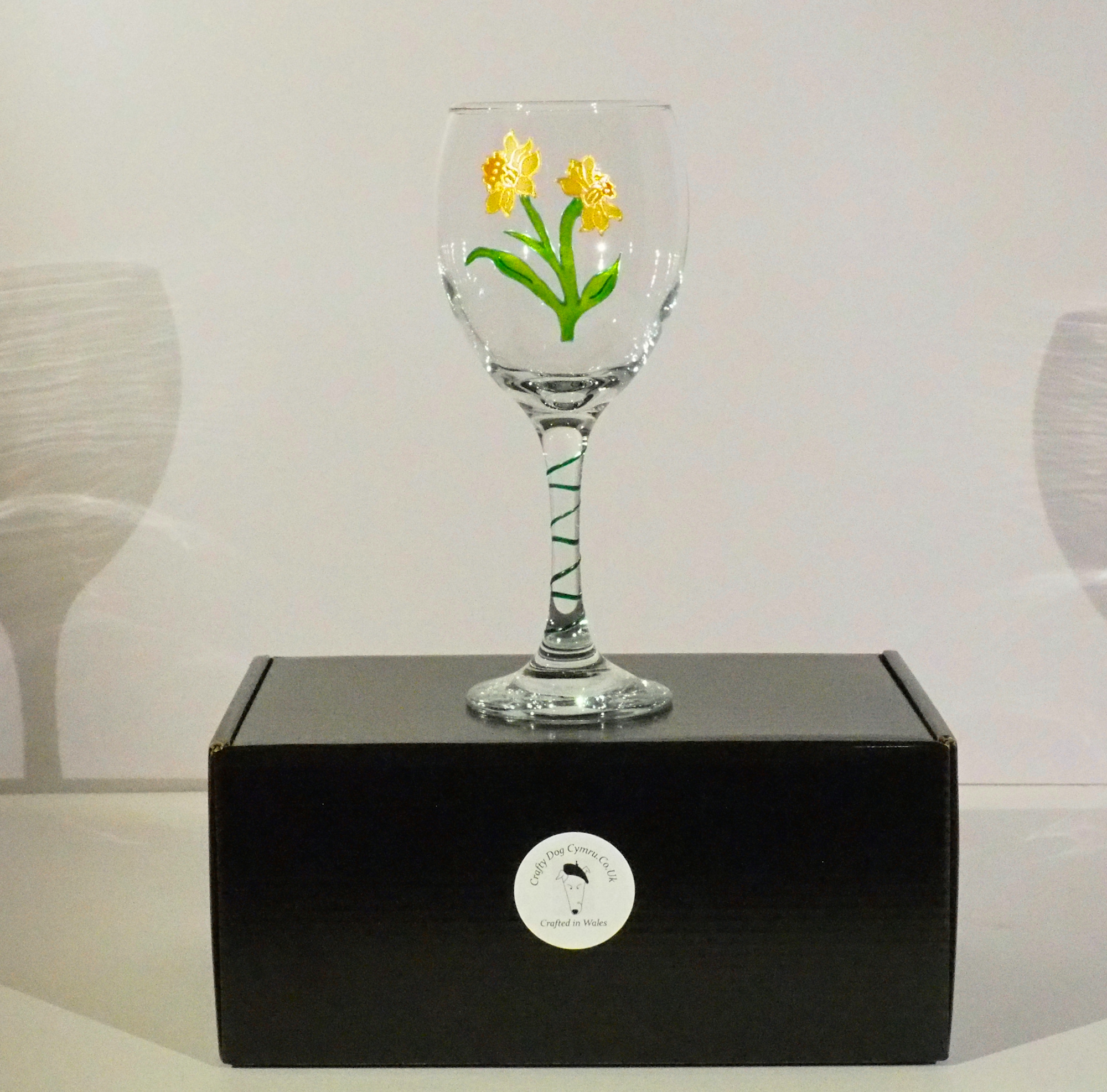 Welsh Daffodil Wine Glass in Presentation/Gift Box