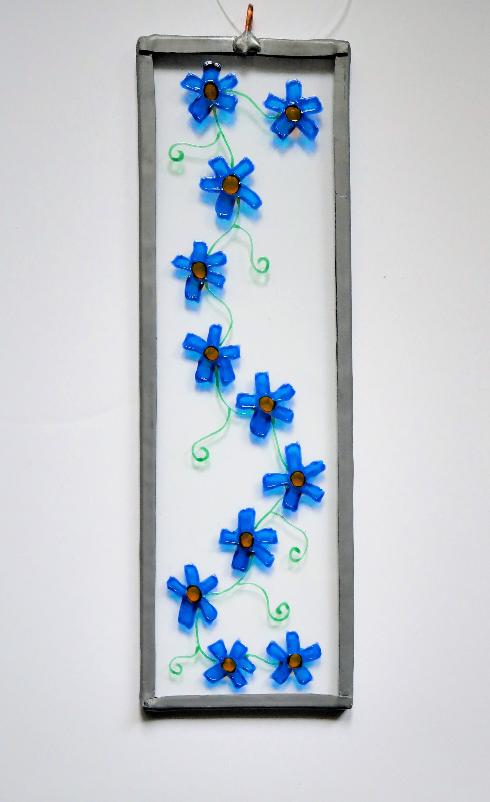 A beautiful hand-drawn chain of forget me nots design, baked and leaded 6 inch by 1 1/2 inch rectangle. Can be used as a wall plaque as well. Price includes First Class UK postage. For US/Canada/Australia or European Postage message us for a postal price.