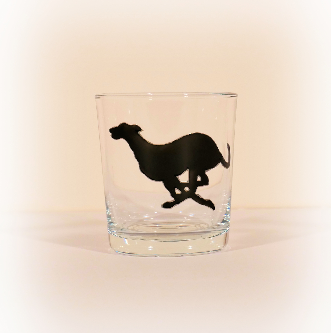 Beautiful hand drawn and hand painted running greyhound silhouette, finished in pewter outline. Each one individually drawn and painted by us here in Clydach, Wales, and is a piece of art in itself. They are NOT transfers! The glass has been baked so that it is dishwasher safe to 40 centigrade, but we would always recommend hand washing.